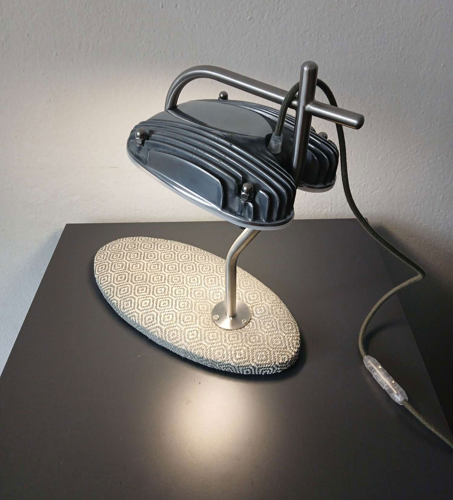Born in 1965 in Birmingham, England, it started as a valve cover for a BSA single-cylinder motorcycle engine. The scuffs, marks, and scratches manifest the good and the not-so-good times of its 60-year-long life. In 2025 I offered it a new life reincarnating it into a desk lamp. It is here to illuminate your private space, desk, living room, or man cave, or even give you the chance to make a unique gift for your loved one!