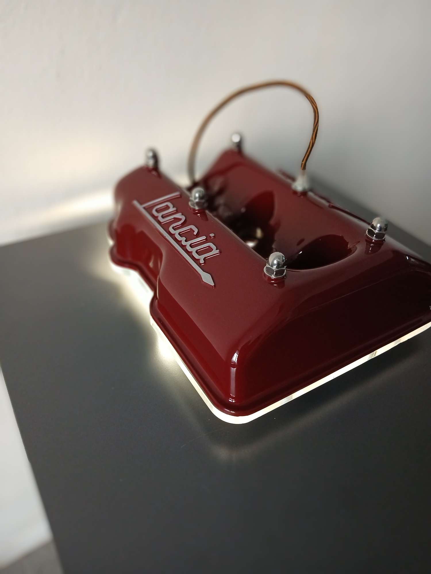 Lancia is one of the very few companies to have won both Formula 1 & World Rally championships! Apart from the strong heritage this is one of my beloved engine parts, and this is the third time I reincarnate one into a desk/floor lamp. Finished in one of my favourite colours, the original Rosso York, it comes with a 4m/13ft cable so you can place it in your favourite spot!